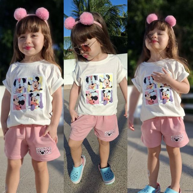 Conjunto roupa infantil menina divertidamente e minnie short e camisa