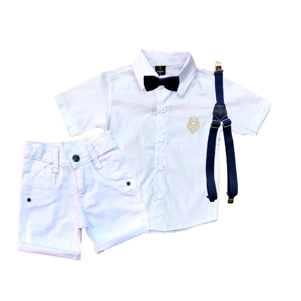 Roupas De Bebê Menino Conjunto Social Batizado. Bermuda color branca de qualidade com botão metálicos . Possui dois bolsos na frente e bolsos traseiros. Corte ajustado ao corpo. Camisa social curto lisa branco com botões. Kit suspensório e gravata. Este conjunto reúne conforto e estilo que pode ser utilizado nas mais diversas ocasiões como por exemplo: Batizado, Pajem, Festa de casamento, Festa de Aniversário e muito mais.... TAMANHO: 1 ao 8 Contém: 01 Camisa Social 01 Bermuda 01 Kit suspensório e gravata MEDIDAS: BODY SOCIAL: Tamanho (P) - 33 comprimento - 22 largura Tamanho (M) - 36 comprimento - 25 largura Tamanho (G) - 38 comprimento - 26 largura CAMISA SOCIAL: Tamanho (01) - 32 cm de comprimento - 23 cm de largura Tamanho (02) - 33 cm de comprimento - 26 cm de largura Tamanho (03) - 38 cm de comprimento - 29 cm de largura Tamanho (04) - 42 cm de comprimento - 29 cm de largura Tamanho (06) - 45 cm de comprimento - 34 cm de largura Tamanho (08) - 46 cm de comprimento - 35 cm de largura BERMUDA: Tamanho (P) - 23 cm comprimento - 21 cm largura Tamanho (M) - 25 cm comprimento - 22 cm largura Tamanho (G) - 27 cm comprimento - 24 cm largura Tamanho (01) - 26 cm de comprimento - 23 cm de largura Tamanho (02) - 28 cm de comprimento - 24 cm de largura Tamanho (03) - 29 cm de comprimento - 27 cm de largura Tamanho (04) - 33 cm de comprimento - 28 cm de largura Tamanho (06) - 34 cm de comprimento - 29 cm de largura Tamanho (08) - 36 cm de comprimento - 31 cm de largura Suspensório: Medidas na regulagem mínima: 32 cm Na regulagem máxima: 50 cm No máximo de elasticidade: 72 cm Gravata Borboleta : Largura no pescoço:26 cm CORES: Conforme fotos. ________________________ DÚVIDAS FREQUENTES: - Caso eu queria embrulhado para presente, vocês embrulham? Sim. Com todo amor e carinho. Só pedir no campo de mensagens logo após a compra. - Tem a pronta entrega? Qual o prazo de envio? Todos os produtos temos a pronta entrega e em estoque. Compras aprovadas até as 10 horas serão enviadas no mesmo dia. Após esse horário serão enviadas no próximo dia útil. - Caso não sirva posso efetuar a troca? Sim, caso necessite temos a devolução gratuita. ________________________ SOBRE NOSSA EMPRESA: A Pó-Pô-Pano é uma empresa familiar que nasceu junto com nosso filho primogênito, o Gael, em 2017. Inicialmente trabalhávamos apenas com Fraldas Ecológicas. Hoje a família está maior, com a chegada da Joanna e a empresa vem crescendo também. Levamos aos nossos clientes centenas de produtos da mais alta qualidade em vestuário, calçados e acessórios tamanho Bebê, Infantil e Juvenil. Com 3 anos de Mercado já atendemos mais de 6 mil clientes. Possuímos reputação positiva em qualidade de atendimento e entregas feitas dentro do prazo. Pó-Pô-Pano O melhor da nossa família para a sua! QUALQUER DÚVIDA ESTAMOS A DISPOSIÇÃO! Equipe Pó-Pô-Pano