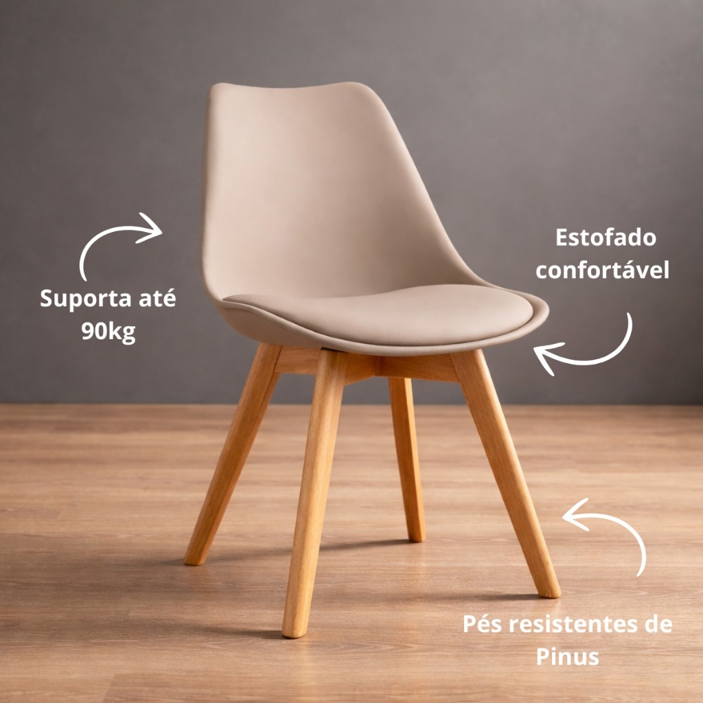 LIMITE DE COMPRA: SOMENTE ATÉ 1 KIT POR COMPRA O conjunto com 4 Cadeiras Saarinen combina estética moderna e funcionalidade para compor ambientes internos com elegância. Ideal para salas de jantar e cozinhas, oferece conforto no uso diário e uma estrutura estável com base em madeira. Seu design atemporal valoriza o ambiente e se adapta facilmente a diferentes estilos de decoração. Cuidados e uso Limpar com pano levemente umedecido Não utilizar produtos abrasivos ou químicos Utilizar apenas em ambientes internos Manter sobre superfície plana Características Conjunto com 4 cadeiras Design moderno e atemporal Estrutura resistente e estável Indicado para uso residencial Medidas Altura: 83cm Largura: 49cm Profundidade: 54cm Altura do assento: 46cm Imagens meramente ilustrativas. Objetos decorativos não acompanham o produto. As cores podem apresentar variações conforme o monitor ou a iluminação. Confira o produto dentro do prazo de garantia, após esse período não haverá assistência. ATENDIMENTO DIFERENCIADO e ENVIO AGILIZADO para todo o Brasil. Garanta já o seu e deixe seu ambiente ainda mais sofisticado!
