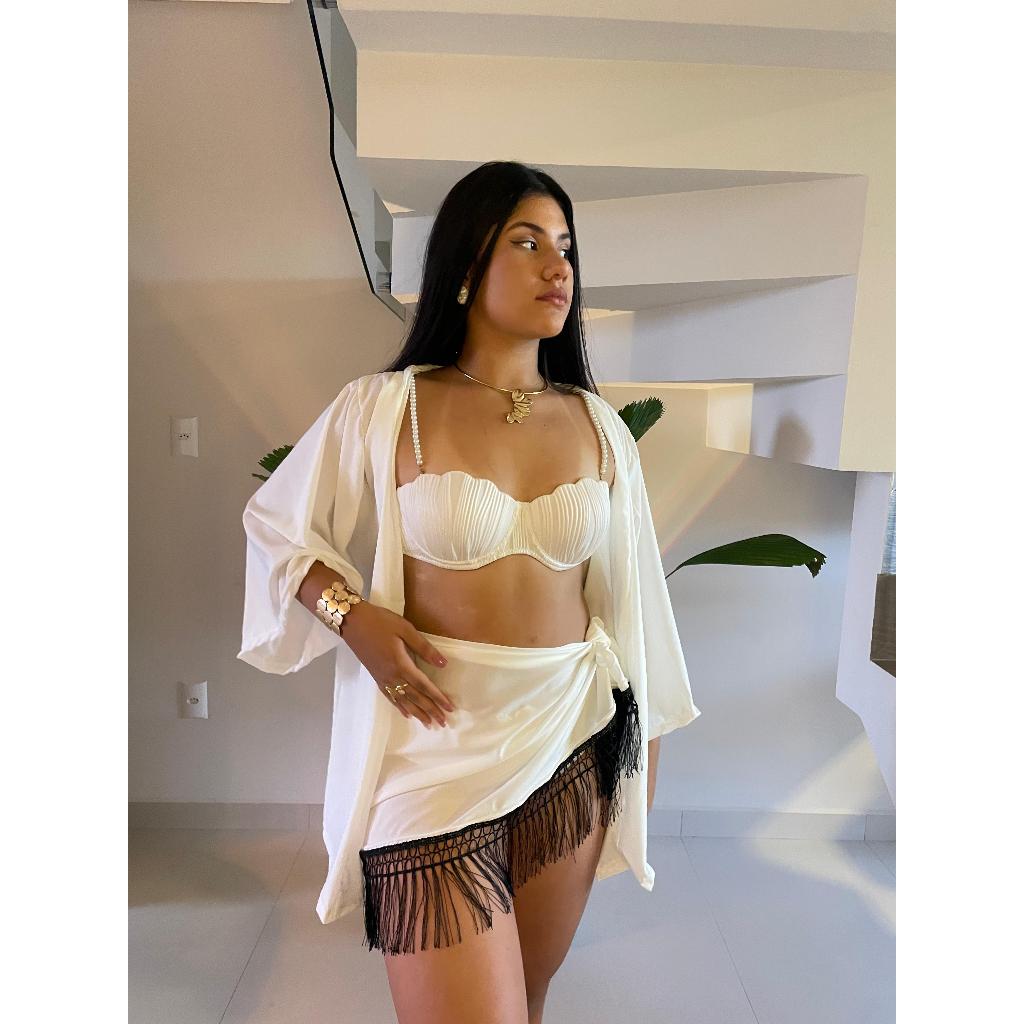 | Conjunto Saída de Praia Feminina Luxo - Kimono + Saia com Franja - ... este produto | R$ 57,60 | 28% | 4.9/5 | 321 |
