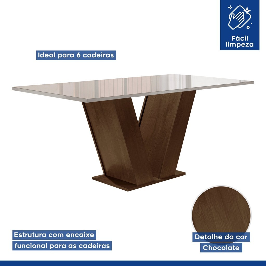 Conjunto Sala de Jantar 1 Mesa 160x80cm Tampo Mdf/vidro 6 Cadeiras Espanha Yescasa Chocolate/Off White/Veludo Areia