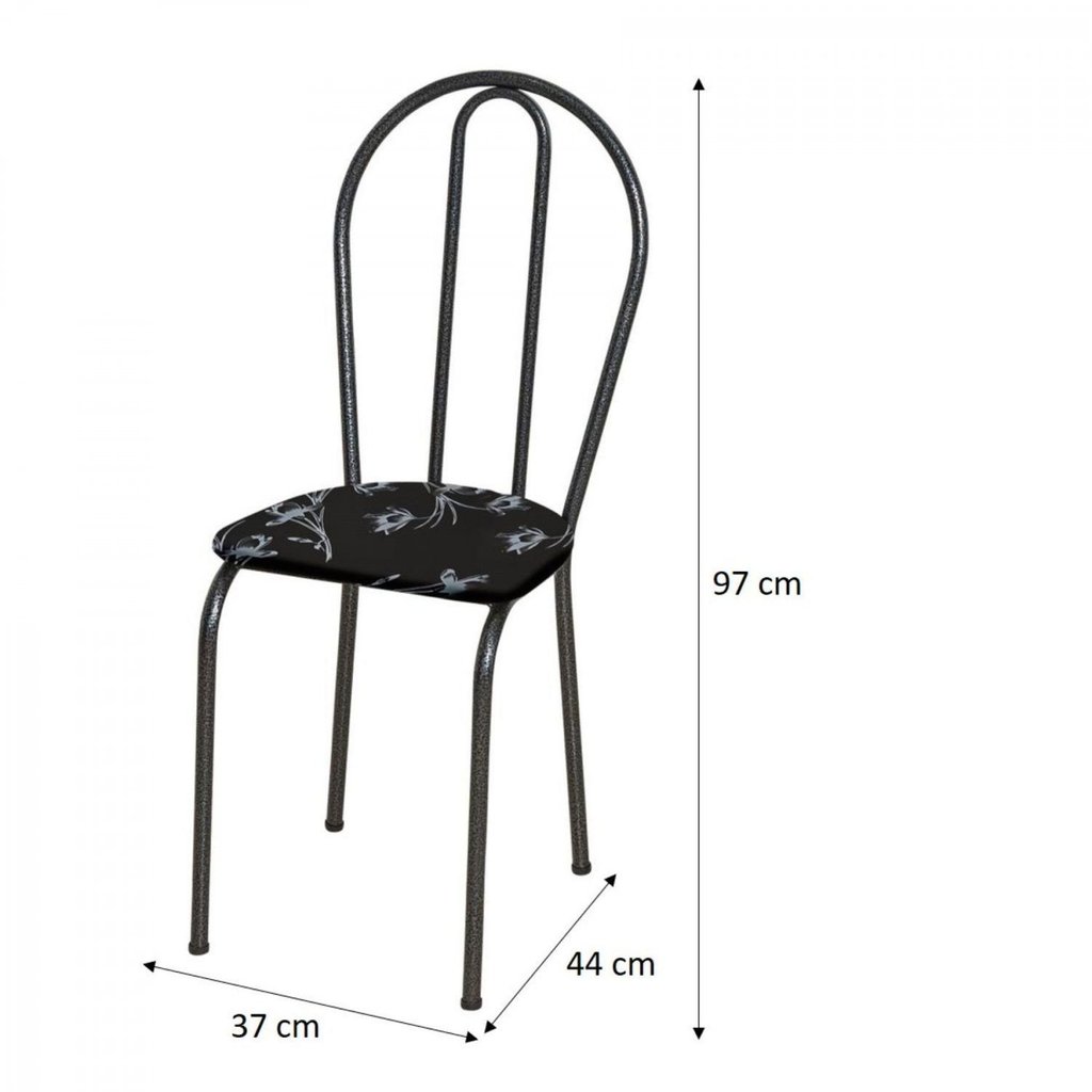 Conjunto Sala de Jantar 1 Mesa Tampo Granito Quadrado 4 Cadeiras Thais Cromo Preto/Preto Flor