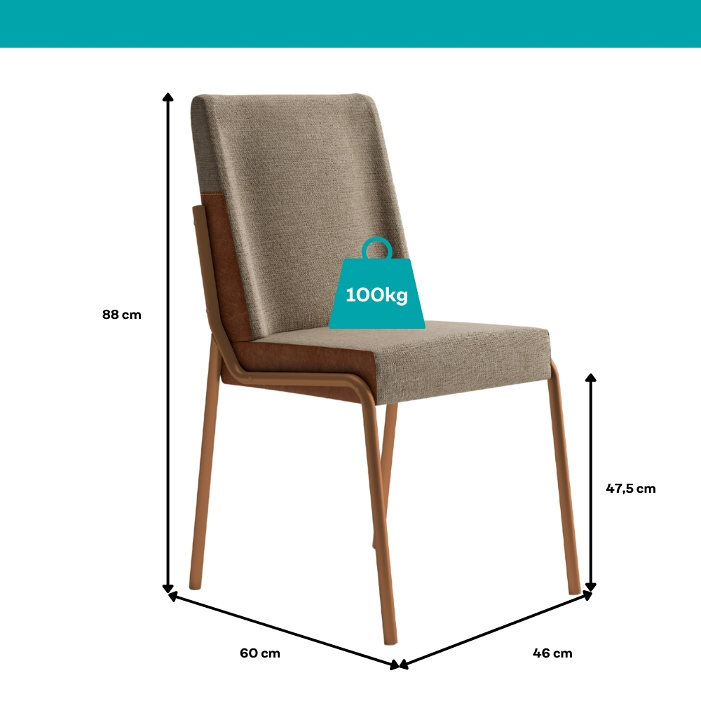 O Conjunto San Lorenzo traz modernidade para a sua sala de jantar, deixando o ambiente agradável e combinando com a sua decoração já existente. As cadeiras, com seu encosto anatomicamente moldado, garantem um conforto e ergonomia. Ao combinar com a mesa, o tampo de madeira proporciona sensação de leveza e contato com a natureza, deixando o ambiente ainda mais agradável. Com materiais de proteção, tanto cadeiras quanto a mesa possuem ponteira plástica e são produzidas com estrutura de tubo de aço, proporcionando muito mais resistência. Especificações Mesa: Medidas: Largura:120 cm | Altura: 76,5 cm | Profundidade: 80 cm Peso: 19,6 Kg Tampo: BP 40mm Estrutura: Tubo de Aço 40x40mm Especificações Cadeira: Medidas: Largura:46 cm | Altura:88 cm | Profundidade:58 cm | Altura do assento:47,5 cm Peso: 15 Kg Estrutura: Tubos de aço Assento: Estofado Encosto: Estofado Ponteira: Plástica Montagem: Soldada Peso suportado: Até 100 Kg Garantia: Os produtos possuem garantia de 03 meses (se usado em condições normais), contra defeito de fabricação, ou componentes utilizados. Esta garantia não cobre defeitos por uso inadequado ou abusivo, falta de cuidados e desbotamento natural dos revestimentos. Condições de perda da garantia: - Mau uso ou manuseio incorreto. - Desbotamento causado pela exposição direta da luz solar. - Danos causados por agentes da natureza, como inundações ou acidentes de qualquer espécie. - Uso indevido de produtos abrasivos para realizar a limpeza. - Decurso do prazo estabelecido. Recomendações para uma boa conservação: - Dicas para limpeza e conservação do seu produto, você encontrará no esquema de montagem que o acompanha. Informações importantes: - Trabalhamos para apresentar imagens fiéis ao produto real. Porém, as cores podem sofrer variações de acordo com o monitor, iluminação do ambiente em que se encontram e até por sua percepção visual comparado ao ambiente residencial. - Desta forma, as imagens são meramente ilustrativas. - Todos os objetos decorativos não acompanham o produto. - O produto acompanha manual com instruções para a montagem. - A empresa Móveis Carraro não realiza o serviço de montagem. PERGUNTAS FREQUENTES - Existem outras cores disponíveis? Não, este produto possui disponível apenas a cor descrita nesse anúncio. - Vocês entregam para todas as regiões do Brasil? De que forma é feita a entrega? Sim, entregamos para todas as regiões do Brasil. E a entrega é realizada por transportadoras parceiras. - Este produto é novo ou usado? Todos os nossos produtos são novos. E acompanham nota fiscal e certificado de garantia. - Recebo o produto montado? Não, este produto é enviado desmontado. Junto com ele é enviado manual com instruções para a montagem. - Vocês realizam a montagem do produto? Não possuímos o serviço de montagem.