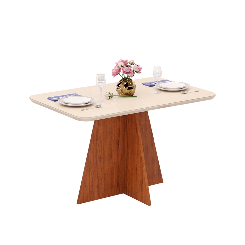 Adquira já o Conjunto para Sala de Jantar com Mesa Siena Freijó Off White e 4 Cadeiras Ayla Lunar e garanta extremo aconchego aos seus jantares. A mesa é a opção certa para decorar o ambiente, já que possui um design supermoderno em formato de cruz. Além de elegante, ainda possibilita guardar as cadeiras embaixo do tampo, para otimizar o espaço. O tampo da mesa é chanfrado e feito em MDF 1,8 cm e vidro pintado, o que facilita a limpeza. A cadeira possui encosto e assentos estofados com espumas de alta qualidade proporcionando todo o conforto que você procura. Além disso, conta com um bordado geométrico em seu encosto ergonômico, outro ponto de destaque é a sua estrutura reforçada, produzida em MDF de 1,8 e 2,5 cm. Aproveite e invista em beleza para a sua casa e aconchego para você! Medidas da Mesa Largura: 120 cm Altura: 79,6 cm Profundidade: 90 cm Peso: 31,70 kg Medidas das Cadeiras Largura: 42 cm Altura: 100,5 cm Profundidade: 61 cm Peso: 15,10 kg Características Técnicas Mesa Material da estrutura MDF e MDP Tampo de MDF 1,8 cm Tampo Fixo na Base Possui vidro comum pintado de 0,4 cm de espessura Formato do Tampo retangular Base com formato de cruz, espaço para acomodar todas as cadeiras Número de lugares recomendado 4 Sapatas deslizadoras, que facilitam o manuseio e a limpeza da sua casa Peso máximo suporta 15 Kg (Tampo) Características Técnicas Cadeira Produzido em MDP e MDF Assento, laterais e encosto estofados com espuma de alta densidade que proporciona mais conforto e durabilidade Tecido 100% Poliéster, com toque agradável e resistente Bordado no encosto, com um charme especial Altura do chão até o assento de 49 cm Sapatas deslizadoras, que facilitam o manuseio e a limpeza da sua casa Suporta Pessoas de até 130 Kg (Assento) Observações: Imagens meramente ilustrativas (não acompanha os itens de decoração). As cores do produto podem variar de acordo com monitor e iluminação do ambiente. A DJ Móveis não se responsabiliza pelo serviço de montagem, o produto é enviado desmontado. Produto NOVO, manual de montagem e todos os acessórios necessários para a montagem completa do produto. Perguntas Frequentes: O produto é enviado montado? Todos os produtos da DJ Móveis são enviados desmontados, não realizamos a montagem dos produtos. Você receberá juntamente com o seu produto o manual de montagem e todos os acessórios para a realização da montagem. O produto é novo ou usado? Todos os produtos da DJ Móveis são novos, você receberá o produto novo saindo direto da nossa fábrica. Posso retirar o meu produto em alguma loja física? Não possuímos lojas físicas para retirada de produtos. Qual é o valor do frete? O valor do frete é calculado com base no peso, volume e CEP de destino. O produto é entregue em qualquer local do Brasil? Sim, entregamos em todo o Brasil através de nossos parceiros logísticos. O produto possui garantia? Sim, todos os produtos da DJ Móveis possuem garantia de 6 meses. Manutenção e Limpeza: Para manter seu móvel novo por muito mais tempo, evite locais úmidos, mantenha-o distante de líquidos e de fontes de calor. Evite a exposição prolongada ao sol. Para limpá-lo com segurança utilize uma flanela seca sem produtos abrasivos e nem lustra móveis. Informações importantes: Verifique a qualidade de sua parede antes de fixar qualquer móvel nela. As cores do produto podem variar de acordo com o seu monitor, a iluminação do ambiente em que você está e até mesmo a sua percepção visual. Além da cor pequenos detalhes e acabamentos podem não ficar evidentes na foto, por isso as imagens são meramente ilustrativas. Os objetos decorativos que aparecem na foto não acompanham o produto.