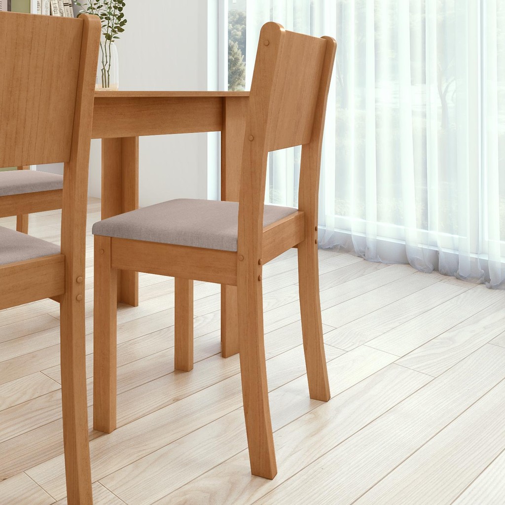 Você precisa de uma mesa de jantar adequada, pois ela é um dos móveis mais importantes da casa - além de ser projetada para acomodar as pessoas nos momentos de refeição, é um elemento simbólico na confraternização. O Conjunto Sala de Jantar Easy Line é a escolha perfeita para quem busca uma sala de jantar elegante e funcional. Este conjunto é composto por uma mesa e quatro cadeiras, projetadas para proporcionar conforto e sofisticação em seu ambiente. A Easy Line é assim: simples, bonita, fácil de combinar, moderna e com aproveitamento de espaço inteligente. Características Únicas A mesa possui um tampo com acabamento em verniz de baixo relevo, realçando os veios da madeira de forma elegante e natural. Já as cadeiras são ergonômicas, com encosto projetado para garantir conforto durante as refeições. Atributos do ProdutoMarca:Móveis Lopas Modelo: Easy Line Cor: Amendoa Clean Quantidade de Cadeiras: 04 Altura da Mesa: 76 cm Largura da Mesa: 136 cm Altura das Cadeiras: 89,5 cm Largura das Cadeiras: 37,5 cm Profundidade das Cadeiras: 46,5 cm Inclui Estofamento: Sim Requer Montagem: Sim Tecido:Linho Rinzai Bege Design Moderno e FuncionalCom design moderno e inteligente, a Easy Line é fácil de combinar com diferentes estilos de decoração. As sapatas em PVC na base das cadeiras conferem maior resistência e estabilidade, enquanto o assento estofado em D-20 proporciona conforto extra para seus convidados. Leve Sofisticação para Sua CasaTransforme sua sala de jantar em um ambiente elegante e acolhedor com o conjunto Easy Line. Com medidas ideais para espaços compactos, este conjunto é a escolha perfeita para quem busca praticidade sem abrir mão do estilo. Adquira agora o Conjunto Sala de Jantar Easy Line e transforme suas refeições em momentos especiais!