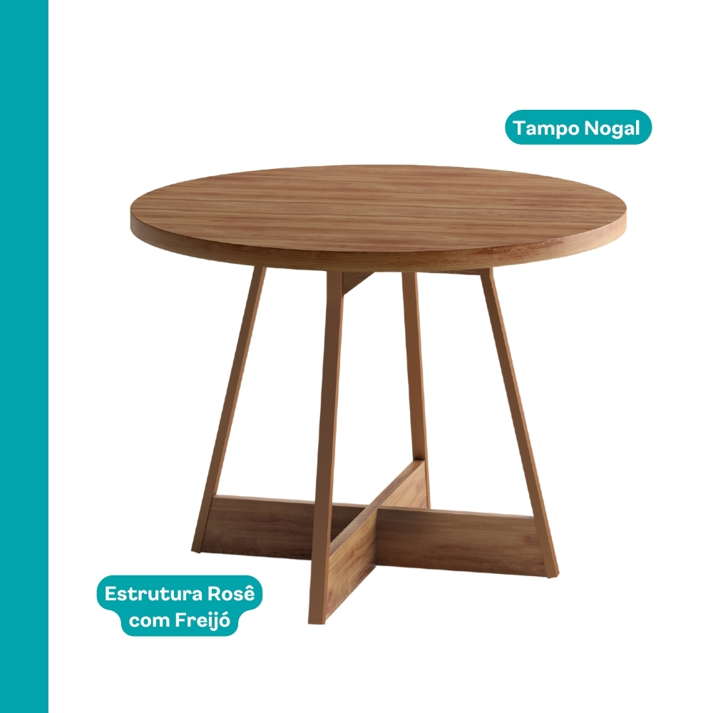 Conjunto Sala de Jantar Déli 4 Cadeiras Carraro Areia/Rose/Nogal