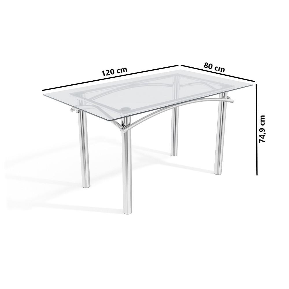 Conjunto Sala de Jantar Kappesberg Crome Tampo de Vidro 4 Cadeiras Cromado Preto
