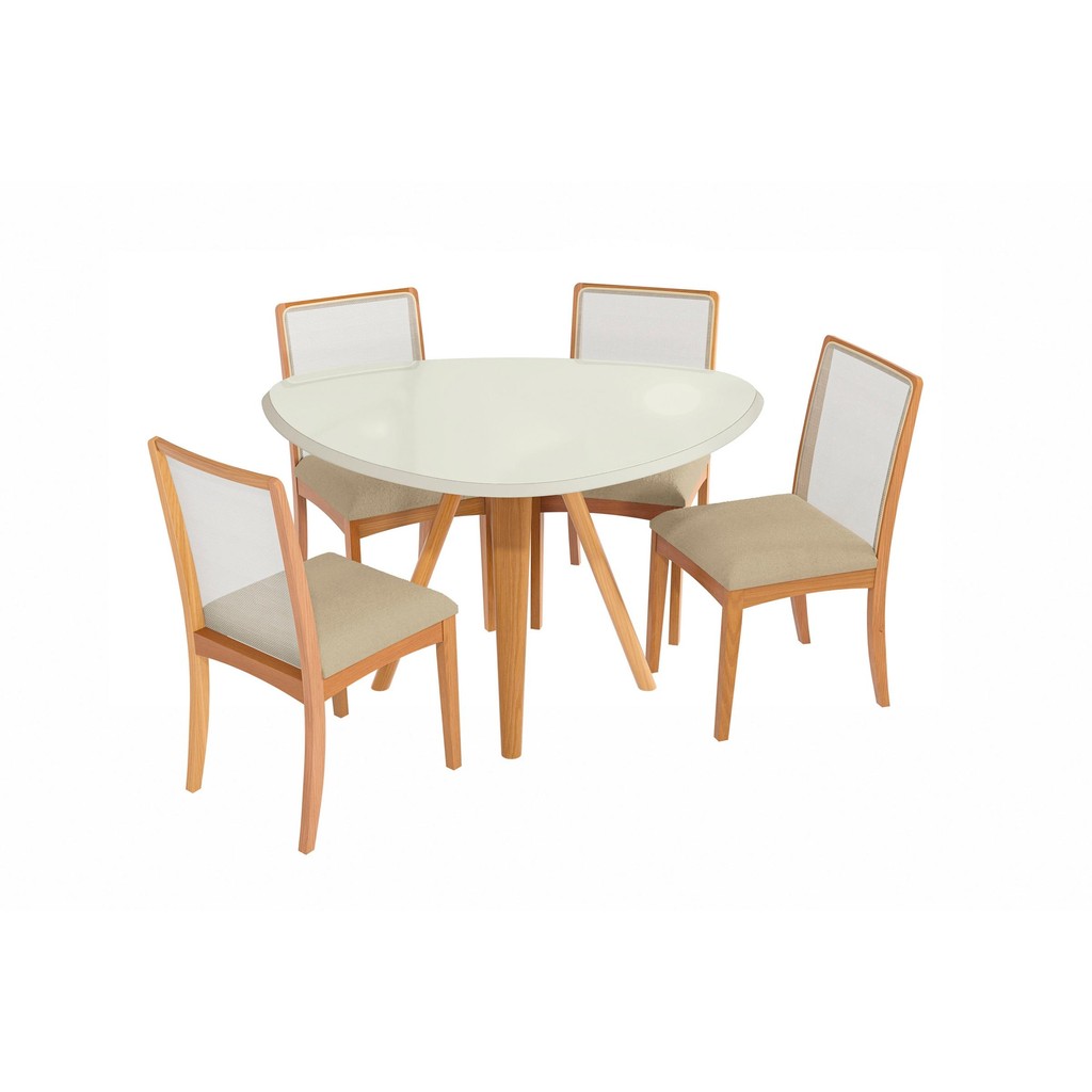 Renove sua Sala de Jantar com o estilo e beleza do Conjunto CSJ134CA da Kappesberg. Unindo modernidade e elegância, a base é ideal para ambientes menores, otimizando espaço sem perder funcionalidade. Com estrutura robusta, em madeira de eucalipto, ela garante estabilidade e resistência, e com pés dispostos em quatro pontas, no estilo palito, você terá a peça perfeita para sua sala de jantar. Medindo 77,7cm de altura e 79,7cm de largura e profundidade, ao ser combinada com o tampo orgânico com vidro, acomoda quatro pessoas. Em MDF e na cor off white, os destaques ficam para o vidro na mesma cor e o seu formato único, que garante um design contemporâneo ao ambiente e destaque durante as refeições. Com medidas de 135cm de largura, 105cm de profundidade e espessura de 30mm, ele suporta até 90kg, deixando sua sala de jantar charmosa e elegante. Já as cadeiras que compõem o conjunto, quatro unidades do modelo Lara, também em madeira de eucalipto, são entregues desmontadas, e suportando até 120kg, deixarão cada momento ainda mais especial. Medindo 92,5cm de altura, sendo 50cm a altura do assento, 44,5cm de largura e 55,5cm de profundidade, para mais comodidade, as cadeiras contam com assento estofado recoberto com tecido boucle bege, o que garante um toque suave e gostoso. E para completar seu design e garantir ainda mais conforto, o encosto possui telinha na cor bege, proporcionando um acabamento perfeito para todos os momentos, deixando sua sala de jantar mais completa. Informações importantes: As imagens são meramente ilustrativas, não acompanha acessórios; Pode haver variação de cor de acordo com a calibragem da tela onde o produto está sendo visualizado; Este anúncio acompanha tampo, base e quatro cadeiras; Todos nossos móveis são entregues desmontados; A montagem é sempre por conta do cliente (orientamos a contratação de um profissional qualificado, o manual de montagem acompanha o produto); O vídeo do produto pode ser genérico, então atente-se às imagens do anúncio para optar pela cor/modelo.