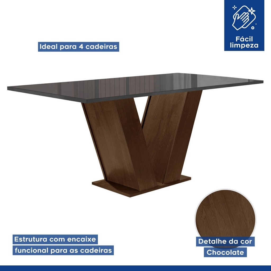 Conjunto Sala de Jantar Mesa 120x80cm Tampo Mdf/vidro com 4 Cadeiras Espanha Yescasa Chocolate/Grafite/Marrom