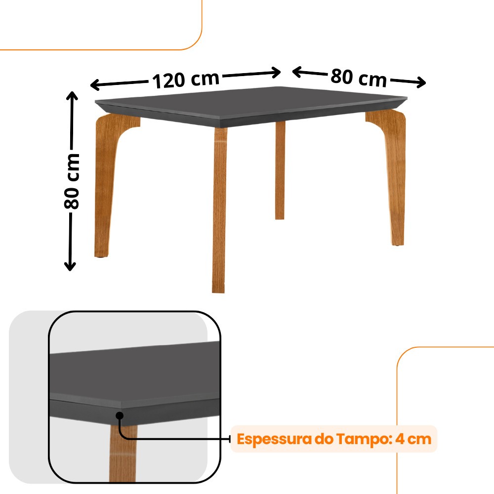 Conjunto Sala de Jantar Mesa Liz 120cm MDF Canto Reto e 4 Cadeiras Athenas Moderna
