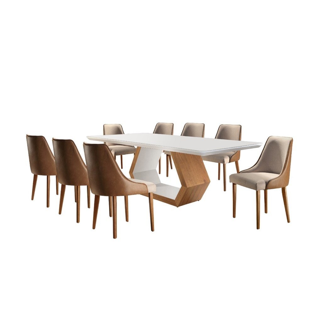 Conjunto Sala de Jantar Mesa Madeira Maciça Sarah e 8 Cadeiras Roma Mobilare Caramelo/Cinamomo Imbuia/Off White