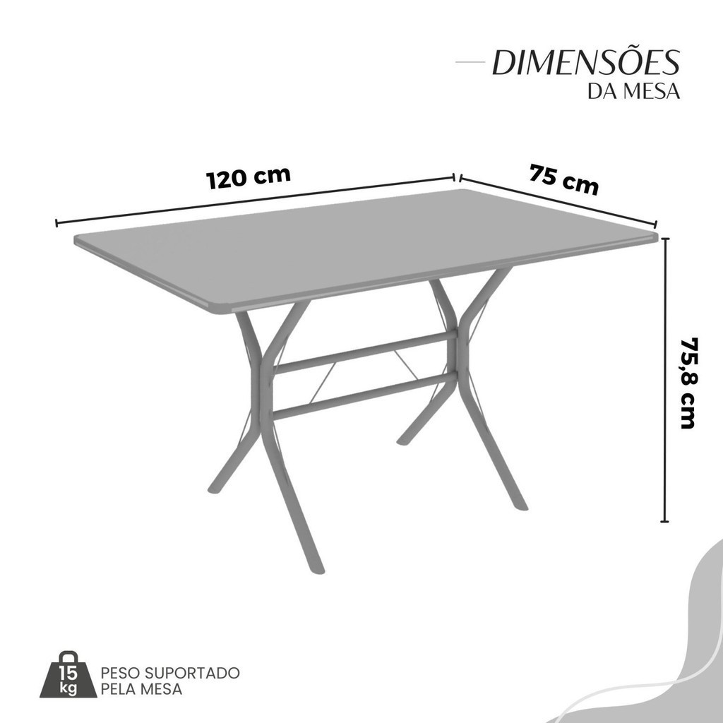 O Conjunto Sala de Jantar Rio é uma ótima escolha para quem busca combinar estilo e praticidade. Este conjunto apresenta uma mesa Retangular com um design elegante e moderno, acompanhada por quatro cadeiras. A mesa tem uma estrutura em aço, que oferece estabilidade ao conjunto. O tampo em Madeira MDP indiana apresenta uma estética sofisticada e acolhedora. A tonalidade indiana adiciona calor e elegância ao ambiente, enquanto a Madeira MDP oferece durabilidade e resistência a riscos e manchas. Essa combinação de cores naturais e resistência prática resulta em um visual clássico e funcional, tornando o tampo em madeira MDP indiana uma ótima escolha para aprimorar sua sala de jantar. Estilo: Moderno Garantia: 03 Meses Altura (cm): 75.5 Largura (cm): 120 Peso da Mesa: 11.25 Cor Secundária: Preto Mesa Extensível: Não Profundidade (cm): 75 Escala de Brilho: Semi-Fosco Formato do Tampo: Retangular Mesa Suporta Até: 15 Serviço Montagem: 114259443 Material do Tampo: MDP Origem do Produto: Nacional Acabamento da Mesa: Pintura Texturizada Ambiente Principal: Sala de Jantar Espessura do Tampo (mm): 15 De Canto (Canto Alemão): Não Peso da Cadeira/Banco: 2.48 Quantidade de Lugares: 4 Cadeira/Banco Estofada: Somente Assento Estofado Quantidade de Cadeiras: 4 Material da Base da Mesa: Aço Possui Apoio para os Pés: Não Cadeira/Banco Suporta Até: 120 Acabamento da Cadeira/Banco: Pintura Texturizada Material da Estrutura da Cadeira: Aço Marca: Móveis Teixeira Cor: Preto Floral/Preto Fosco Cor do Produto: Preto Floral / Preto Fosco Itens Inclusos: 1 Mesa, 4 Cadeiras, Manual de Montagem e Ferragens Cor Predominante: Preto Medida da Base (A x L x P): 74 cm x 65cm x 85,5 cm Medida da Mesa (A x L x P): 75,8 cm x 120 cm x 75 cm Medida do Tampo (L x C x E): 75 cm x 120 cm x 1,5 cm Medida da Cadeira/Banco (A x L x P): 84,5 cm x 37,5 cm x 41,5 cm