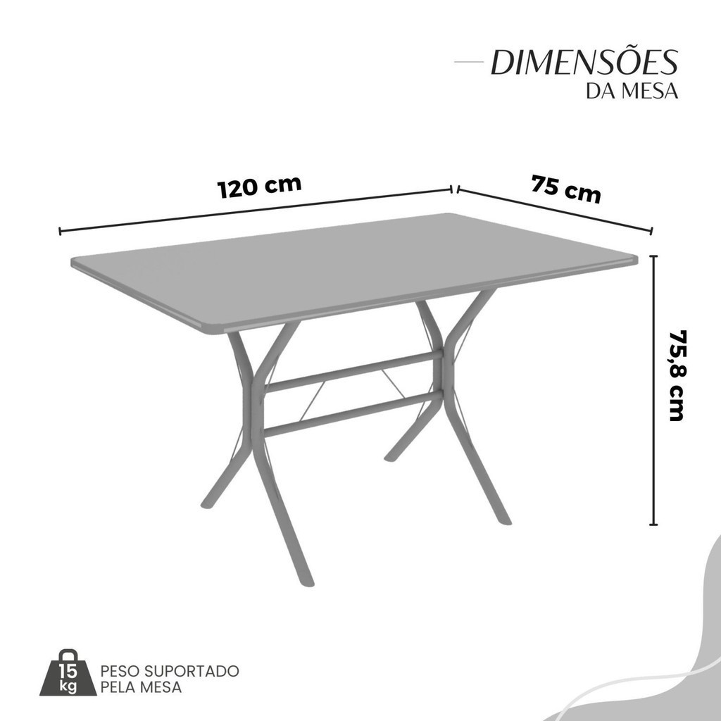 O Conjunto Sala de Jantar Paraty é uma ótima escolha para quem busca combinar estilo e praticidade. Este conjunto apresenta uma mesa retangular com um design elegante e moderno, acompanhada por quatro cadeiras. A mesa tem uma estrutura em aço, que oferece estabilidade ao conjunto. O tampo em pedra ardósia indiana apresenta uma estética sofisticada e acolhedora. A tonalidade indiana adiciona calor e elegância ao ambiente, enquanto a pedra ardósia oferece durabilidade e resistência a riscos e manchas. Essa combinação de cores naturais e resistência prática resulta em um visual clássico e funcional, tornando o tampo em pedra ardósia indiana uma ótima escolha para aprimorar sua sala de jantar. Estilo: Moderno Garantia: 03 Meses Altura (cm): 75.8 Largura (cm): 120 Peso da Mesa: 45.86 Cor Secundária: Preto Mesa Extensível: Não Profundidade (cm): 75 Escala de Brilho: Semi-Fosco Formato do Tampo: Retangular Mesa Suporta Até: 15 Serviço Montagem: 114259443 Material do Tampo: Ardósia Origem do Produto: Nacional Acabamento da Mesa: Pintura Texturizada Ambiente Principal: Sala de Jantar Espessura do Tampo (mm): 18 De Canto (Canto Alemão): Não Peso da Cadeira/Banco: 2.38 Quantidade de Lugares: 4 Cadeira/Banco Estofada: Somente Assento Estofado Quantidade de Cadeiras: 4 Material da Base da Mesa: Aço Possui Apoio para os Pés: Não Cadeira/Banco Suporta Até: 120 Acabamento da Cadeira/Banco: Pintura Texturizada Material da Estrutura da Cadeira: Aço Marca: Móveis Teixeira Cor: Preto Floral/Preto Fosco Cor do Produto: Preto Floral / Preto Fosco Itens Inclusos: 1 MESA, 4 CADEIRA, MANUAL DE MONTAGEM E FERRAGENS. Cor Predominante: Preto Medida da Mesa (A x L x P): 75,8 cm x 120 cm x 75 cm Medida do Tampo (L x C x E): 75 cm x 120 cm x 1,8 cm Medida da Cadeira/Banco (A x L x P): 90 cm x 36,4 cm x 46 cm