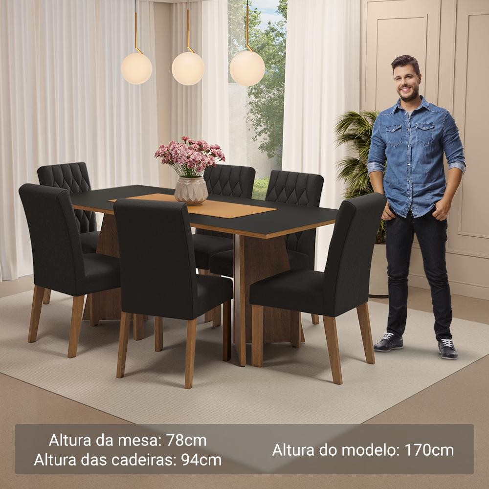 Conjunto Sala de Jantar Mesa Tampo de Madeira 6 Cadeiras Madison Madesa