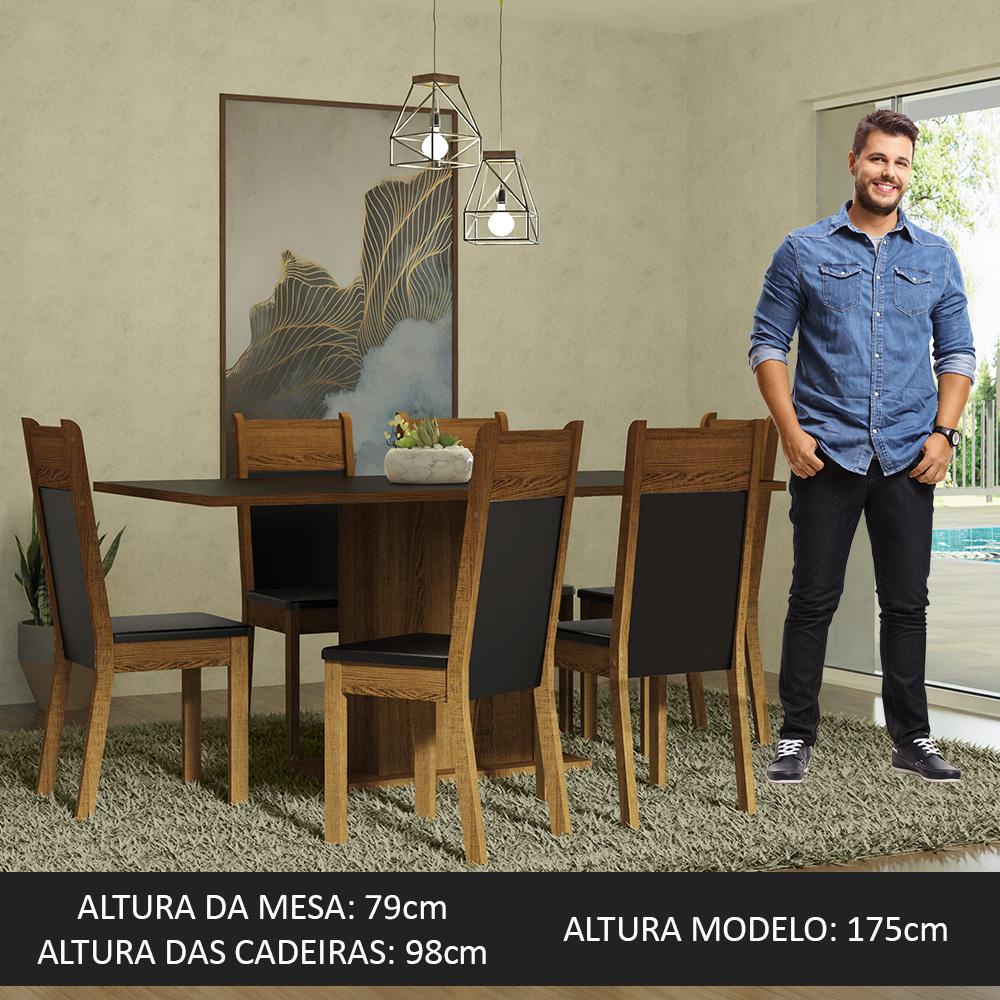 Conjunto Sala de Jantar Mesa Tampo de Madeira 6 Cadeiras Preto/Rustic Augusta Madesa