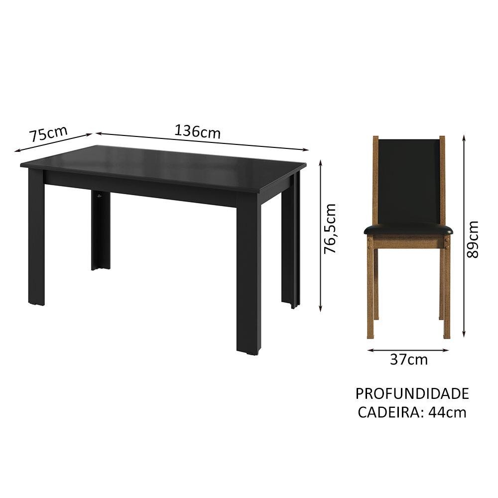Conjunto Sala de Jantar Mesa Tampo de Vidro 4 Cadeiras Preto/Rustic Suzy Madesa