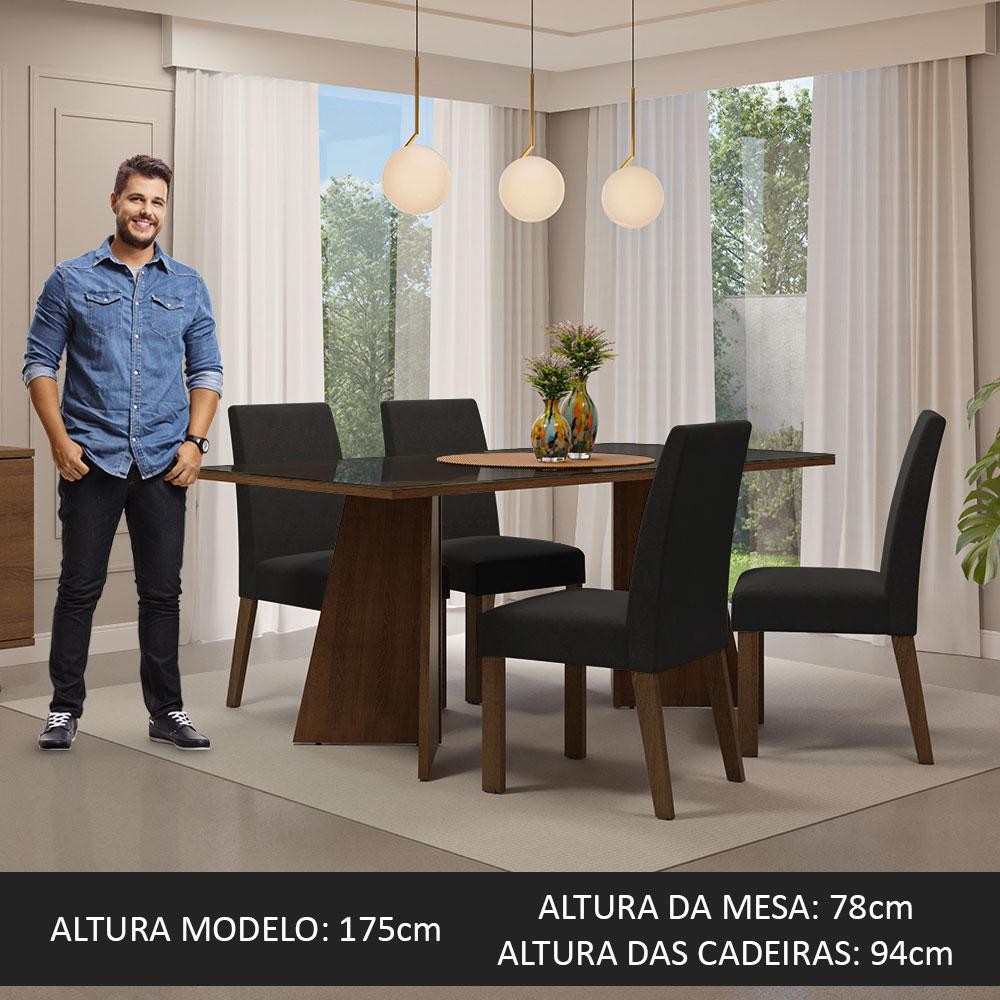 Conjunto Sala de Jantar Mesa Tampo de Vidro 4 Cadeiras Rustic/Preto/Oxford Taylor Madesa