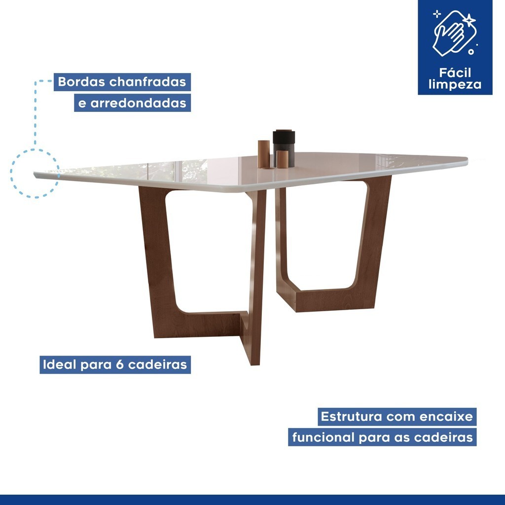 Conjunto Sala de Jantar Nápoles Tampo Vidro/mdf com 8 Cadeiras Luísa Smart Plus Chocolate/Off White/Bege
