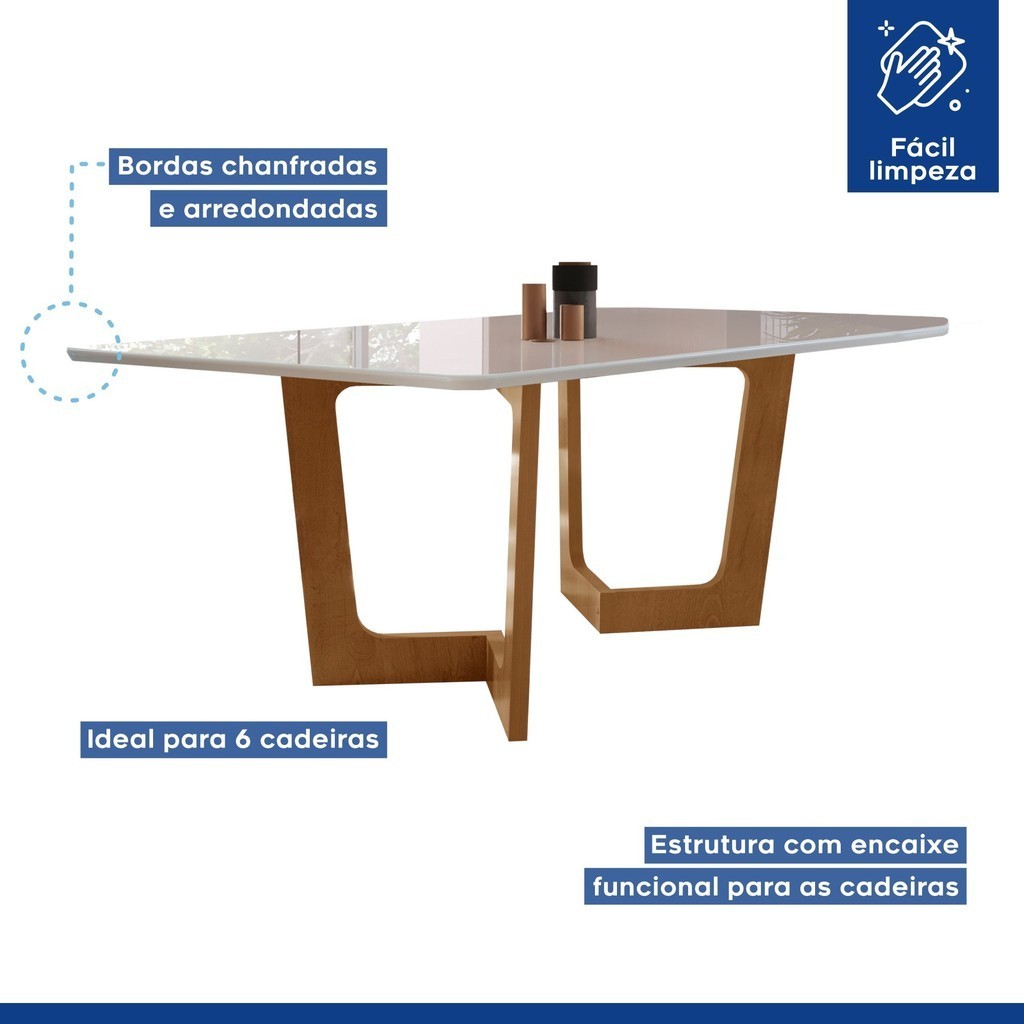 Nosso conjunto de mesa de jantar com 8 cadeiras transformará a decoração para sala de jantar da sua casa! Com design moderno e elegante, a mesa com tampo de vidro é perfeita para quem busca funcionalidade e estilo, com muita elegância. As cadeiras estofadas garantem conforto durante suas refeições, tornando seu jantar ainda mais especial e confortável. Perfeito, não é mesmo? A cadeira de jantar com encosto alto é segura? Claro, ela é produzida com materiais de qualidade e resistentes. A mesa de jantar retangular é segura? Claro, segura e funcional. Combina com a decoração para sala de estar? Claro, também fica perfeita na decoração para sala de jantar e outros ambientes. Estilo: Moderno Formato: Retangular Garantia: 03 Meses Altura (cm): 79 Largura (cm): 200 Peso da Mesa: 69 Mesa Extensível: Não Profundidade (cm): 90 Vidro Temperado: Sim Formato do Tampo: Retangular Mesa Suporta Até: 50 Material do Tampo: Vidro/MDF Origem do Produto: Nacional Ambiente Principal: Sala de Jantar Espessura do Tampo (mm): 29 Almofada do Assento: Fixa Estrutura do Assento: MDF Estrutura do Encosto: MDF De Canto (Canto Alemão): Não Enchimento do Assento: Espuma D-23 Enchimento do Encosto: Espuma Peso da Cadeira/Banco: 9 Quantidade de Lugares: 8 Cadeira/Banco Estofada: Encosto e Assento Estofados Quantidade de Cadeiras: 8 Material da Base da Mesa: MDF Possui Apoio para os Pés: Não Cadeira/Banco Suporta Até: 120 Revestimento da Cadeira/Banco: Veludo Informações Complementares (Novo): Acabamento dos pés das cadeiras em Melamínico Material da Estrutura da Cadeira: MDF Marca: Cel Móveis Cor: Cinamomo/Off White/Areia Cor do Produto: Cinamomo/Off White/Areia Itens Inclusos: 1 Mesa, 8 Cadeiras, Kit Ferragens e Manual de Montagem Linha ou Coleção: Nápoles/Luísa Medida da Base (A x L x P): 77cmx145cmx70cm Medida da Mesa (A x L x P): 79cmx200cmx90cm Medida do Tampo (L x C x E): 200cmx90cmx29mm Quantidade do Produto: 8 Medida da Cadeira/Banco (A x L x P): 97,5cmx44cmx56cm