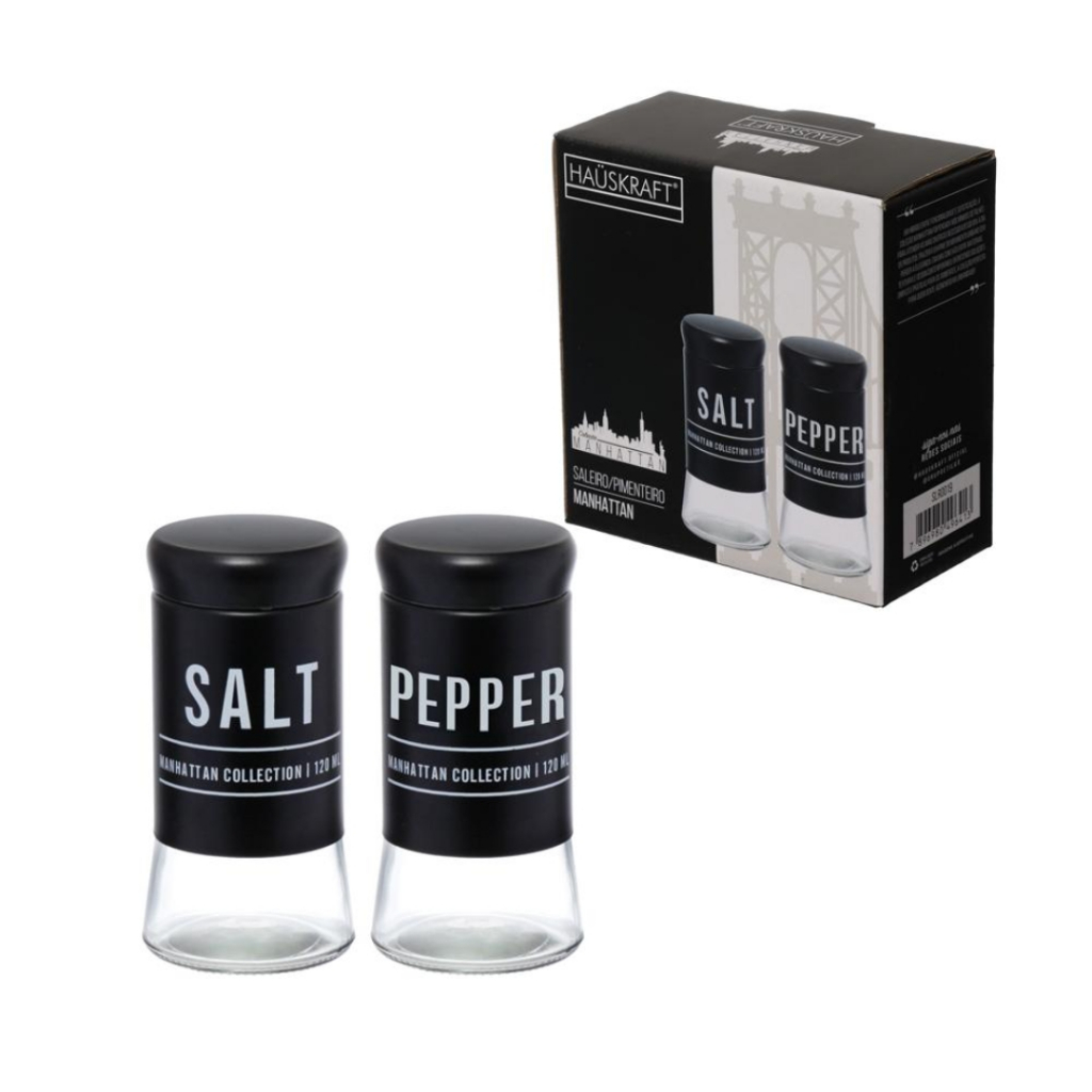 Um híbrido entre funcionalidade e sofisticação, a Coleção Manhattan foi criada para atender às necessidades do dia a dia sem abrir mão do estilo. Inspirada no movimento urbano, une materiais, texturas e design contemporâneo, oferecendo soluções simples, práticas e elegantes para a sua cozinha. O Saleiro e Pimenteiro Manhattan Preto 120ml é ideal para quem busca praticidade e modernidade em cada detalhe. Com acabamento sofisticado e materiais de alta qualidade, garante durabilidade, resistência e charme à mesa. Produto: Saleiro/Pimenteiro Manhattan Preto 120ml Dimensões da Peça: 5,5 x 5,5 x 11 cm Capacidade: 120ml cada Material: Vidro, Aço Inoxidável, Polipropileno e Estanho Cor: Preto e Transparente Contém: 2 unidades (1 saleiro + 1 pimenteiro) Lavar com detergente neutro e esponja macia antes do primeiro uso. Não utilizar esponjas ásperas, palha de aço ou produtos abrasivos. Secar com pano macio e limpo. Produto não apto para lava-louças e micro-ondas. Manter fora do alcance de crianças. ⚠️ Atenção Produto frágil: evite quedas e pancadas. Em caso de quebra, manusear com cuidado, pois pode soltar cacos cortantes. Garantia: 90 dias contra defeitos de fabricação