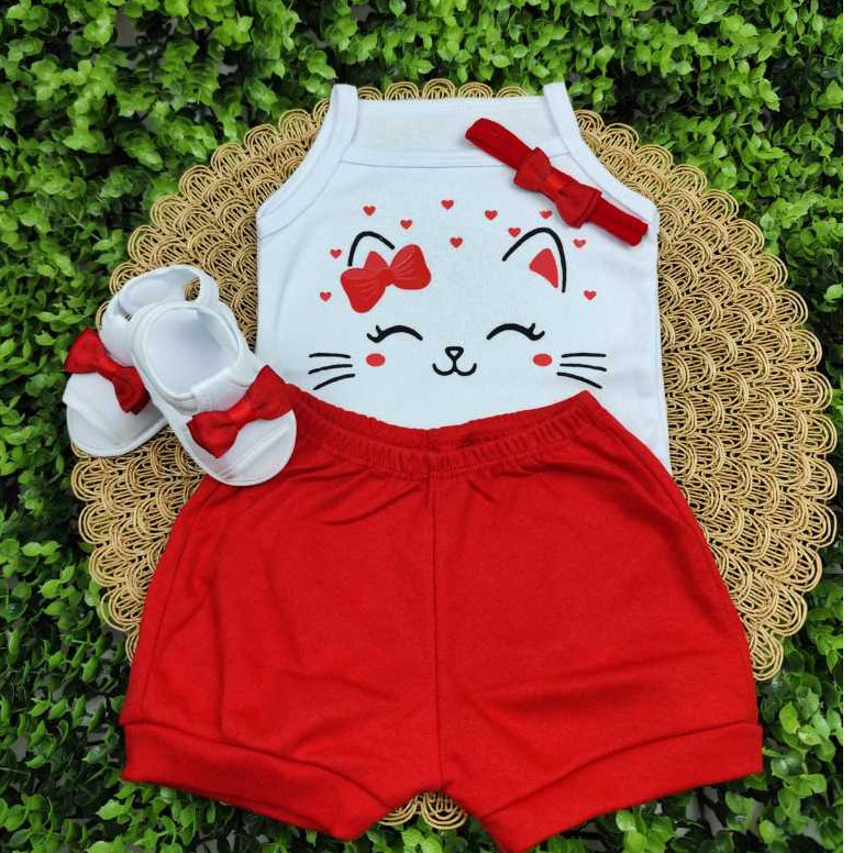 Conjunto Sandália Com Tiara Body E Short Bebe Menina Mesversário Estampado Verão 100% Suedine