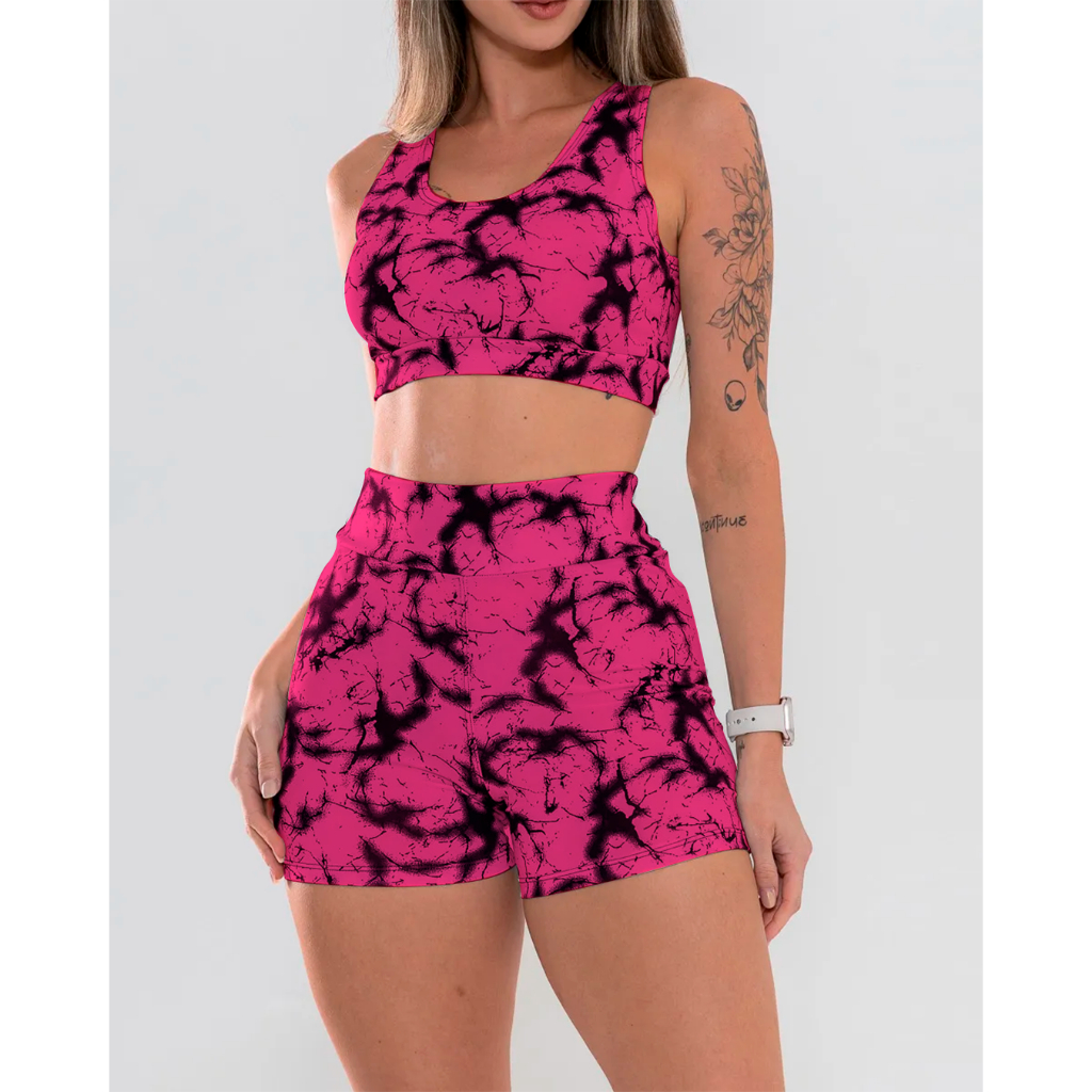 Conjunto Short e Top Marmorizado Explosão Fitness Academia Ginastica Caminhada