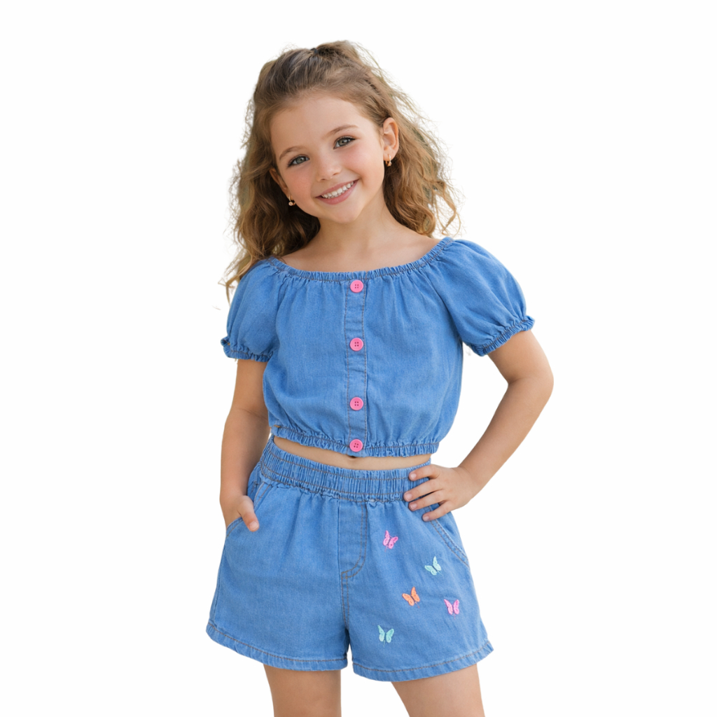 O Conjunto Jeans Infantil está disponível em tamanhos que acompanham o crescimento da sua pequena, garantindo conforto e estilo em todas as fases. Confira as opções: TABELA DE MEDIDAS / BLUSA E SHORT BLUSA Idade aprox. Comprimento Largura 2 anos 32 cm 28 cm 4 anos 36 cm 32 cm 6 anos 40 cm 36 cm 8 anos 44 cm 40 cm SHORT Idade aprox. Comprimento Cintura (sem esticar) 2 anos 22 cm 22 cm 4 anos 26 cm 24 cm 6 anos 30 cm 26 cm 8 anos 34 cm 28 cm Dicas para escolher o tamanho ideal: 1. Meça a altura da criança e consulte nossa tabela de medidas (disponível nas imagens do produto). 2. Se preferir um caimento mais folgado, recomendamos pegar um número acima. 3. O jeans possui *elasticidade moderada*, permitindo ajuste confortável. Cores disponíveis: Azul claro, azul escuro. conjunto jeans menina, conjunto de jeans infantil menina, conjunto infantil menina jeans, conjunto calça jeans + jaqueta menina conjunto short jeans menina, girls denim set, girls denim outfit set, girls jeans set, toddler girls denim set, kids girls jeans outfit, moda infantil menina jeans, roupa infantil menina jeans, conjunto jeans infantil, denim co-ord set girls, denim girls outfit, roupa casual menina jeans conjunto casual jeans menina, outfit jeans menina, conjunto jeans infantil feminina, kids denim two piece set girls Obs.: Todas as peças possuem etiqueta macia e costuras reforçadas para maior durabilidade. Precisa de ajuda para decidir o tamanho? Pergunte-nos!