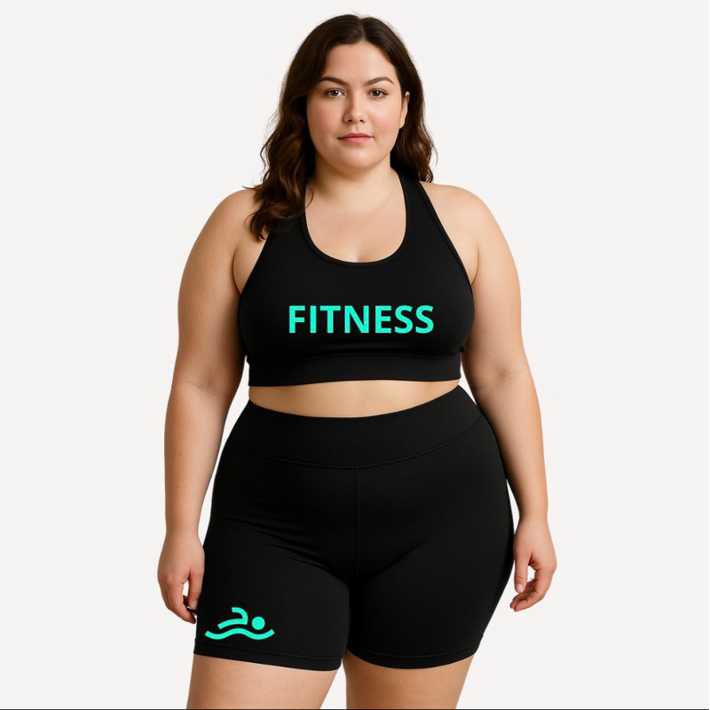 Conjunto Short Meia Coxa + Top Plus Size Estampa Linda Suplex Academia Poliéster GG ao G4