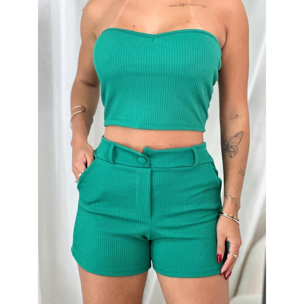 Conjunto Shortinho Botão Cropped Coração Tomara que Caia Estilo Blogueirinha Moda Feminina Tendencia Modinha Natal