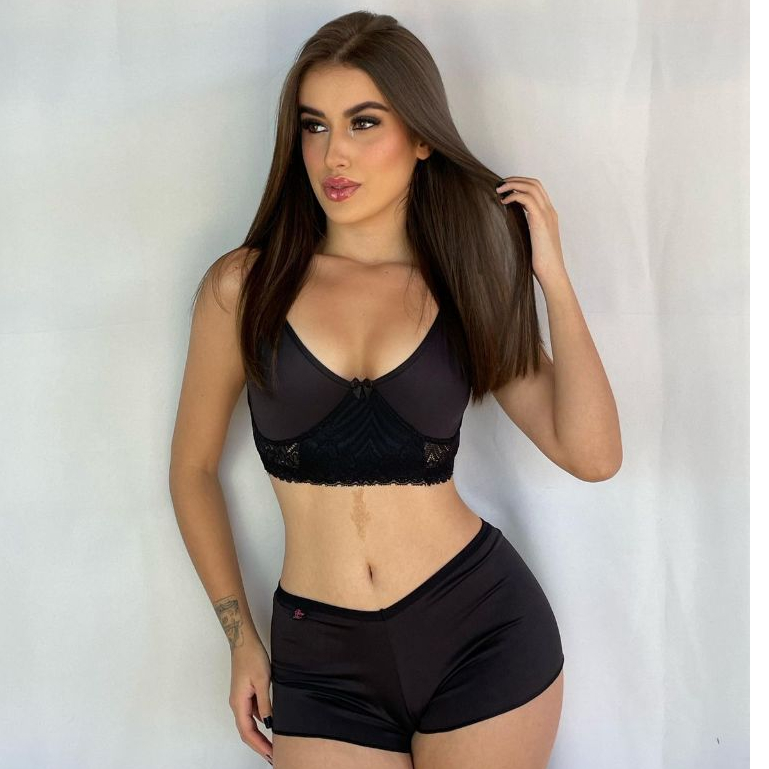 Conjunto Shortinho Conforto + Sutiã Sem Bojo Renda Poliamida