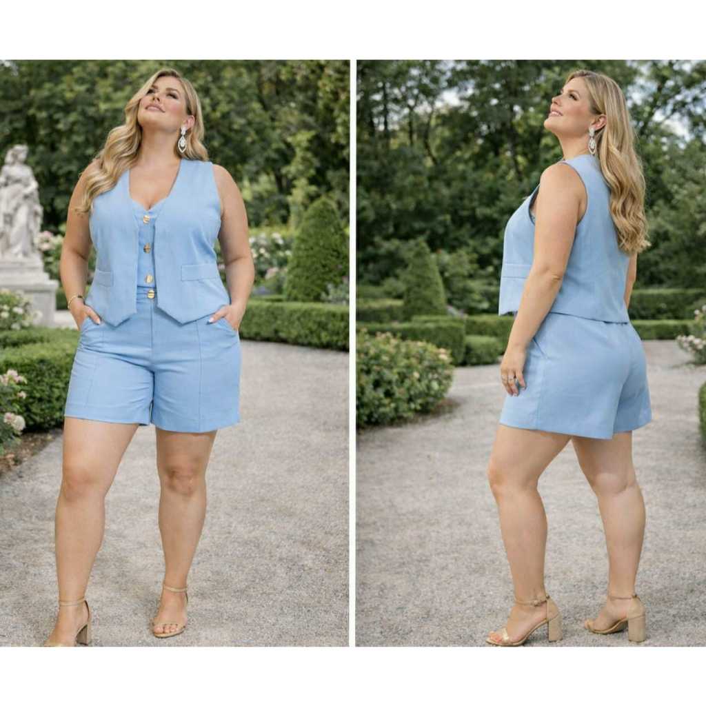Conjunto Shorts e Colete elegante Alfaiataria Social Confortavel Estiloso Plus Size