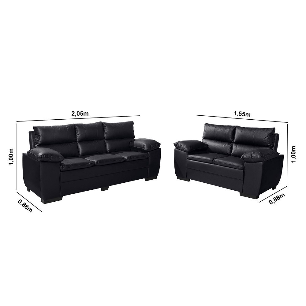 O Sofá Equador 3 e 2 lugares com tecido no corano, comporta até cinco pessoas, com fibra siliconizada no encosto e braços, espuma densidade D28 no assento, com pilow de 3cm de espuma, percintas elásticas , madeira mista de eucalipto e pinus, estofado confortável e moderno. Características: Reclinável: Não Almofada do assento: Fixa Almofada do encosto: Fixa Retrátil: Não Material dos Pés: PVC Necessita Montagem: Sim Possui Percintas Elásticas: Sim Possui Pés: 5 pés (inclusos) Revestimento do Braço: Espuma D20 Itens Inclusos: Sofá de 3 lugares/ 5 pés Tipo de Madeira Maciça da Estrutura: Eucalipto / Pinus Consistência do Assento: Media / Espuma D23 Enchimento do Encosto: Fibra siliconizada Sistema de Montagem: Parafusar os pés / encaixar encosto Suporta até 120 kg Dimensões sofá 2 Lugares: Altura: 100 cm Largura: 155 cm Profundidade: 88 cm Dimensões sofá 3 Lugares: Altura: 100 cm Largura: 205 cm Profundidade: 88 cm Peso: 65,00 kg Garantia do fornecedor de 3 meses