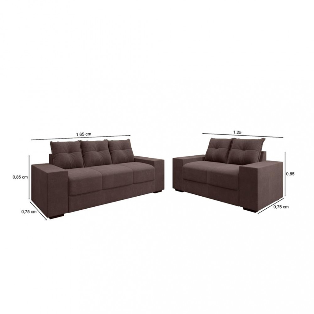 O conjunto de Sofás Flash Chamego 3 e 2 lugares Suede oferece um conforto excelente para toda a família! Fabricado com materiais de alta qualidade, incluindo madeiramento de reflorestamento de eucalipto e tecido Suede. O acabamento com espuma D-23 certamente contribui para uma experiência de sentar mais confortável. Uma ótima opção para quem procura por um sofá durável e confortável. Características: Estrutura Madeira de Eucalipto Pés em Pvc Possui Percintas elásticas Peso que suporta por assento 100 kg Densidade da espuma D 23 Revestimento tecido Suede Dimensões Sofá Maior: Altura: 85 cm Largura: 165 cm Profundidade: 75 cm Dimensões Sofá Menor: Altura: 85 cm Largura: 125 cm Profundidade: 75 cm Peso: 63,00 kg Garantia do fornecedor de 3 meses