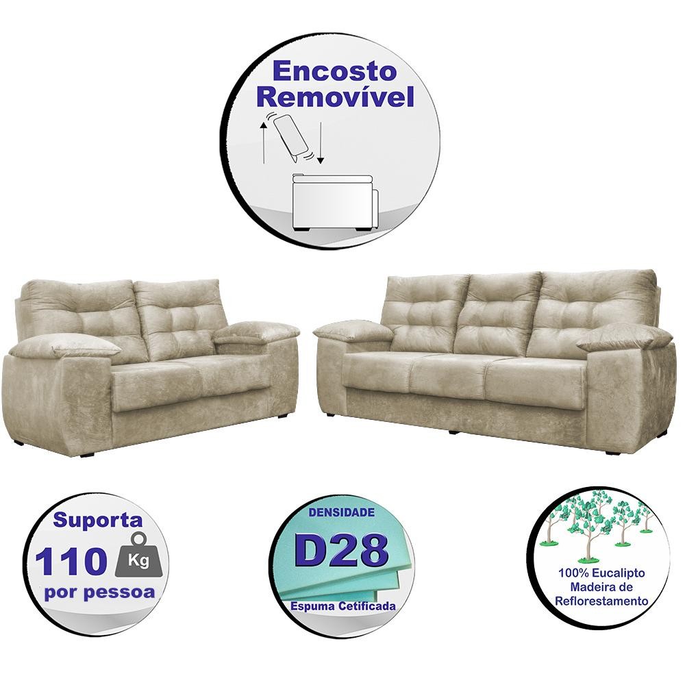 Conjunto Sofá Luxemburgo 3 E 2 Lugares 1,52m e 2,02m Suede Bege