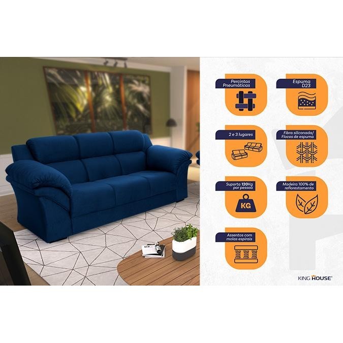 Conjunto Sofá Windsor Velut Azul 3 e 2 Lugares 2,04m e 1,59m - King House