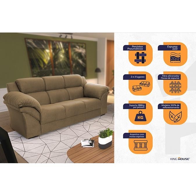 Conjunto Sofá Windsor Velut Bege 3 e 2 Lugares 2,04m e 1,59m - King House