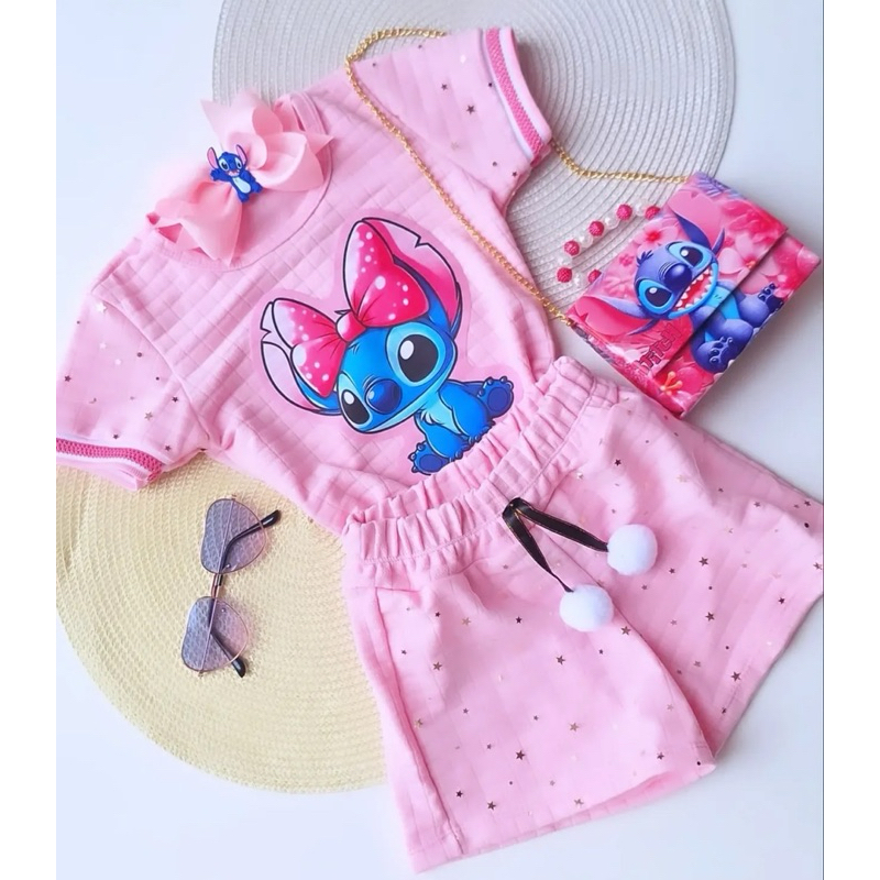 Conjunto Stitch perfeito 😍 Detalhes na manga e shorts de tule com brilho ✅ Tamanhos 2 4 6 8 10 12 14 ✅ Shorts e blusa ✅ 📍Atenção não acompanha nenhum acessórios, anúncio referente somente ao conjunto📍