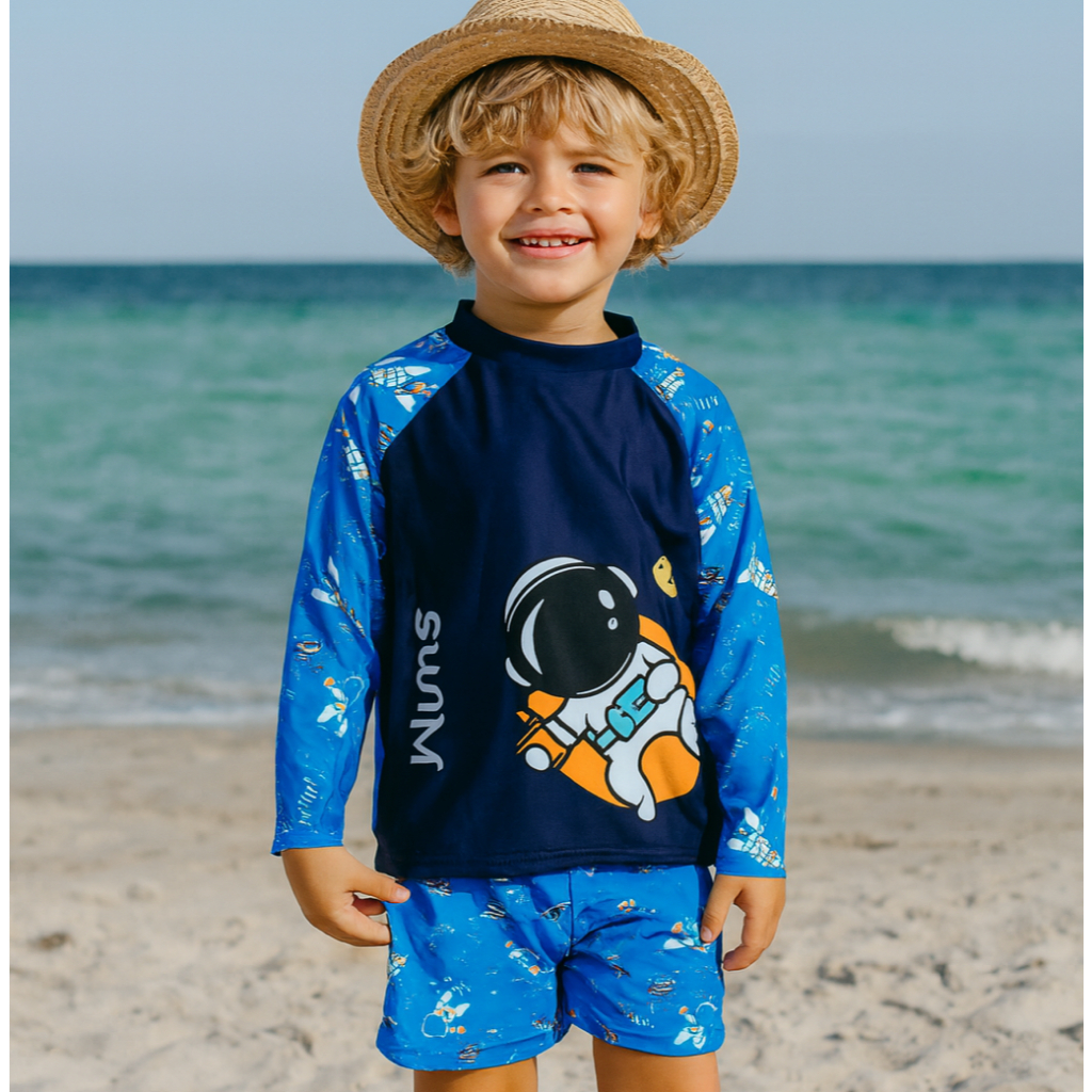 Conjunto Sunga Boxer e Blusa Térmica Infantil Menino Proteção UV 50+ Moda Praia Piscina Natação