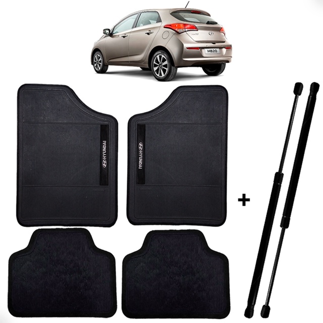 Conjunto Tapete Preto Personalizado Hyundai 4pçs + 2 Amortecedor Traseiro Porta Malas HB20 até 2019