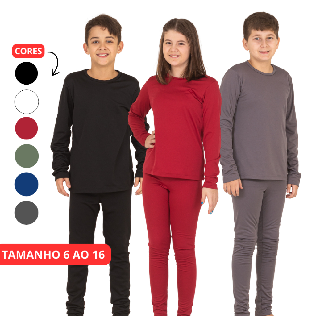 Desenhado especialmente para proporcionar o máximo de conforto, este conjunto é a escolha perfeita para garantir que as crianças se sintam aconchegadas em todas as aventuras do dia a dia. Seja usado por baixo do uniforme escolar para enfrentar o friozinho da manhã ou como um pijama quentinho para uma noite tranquila de sono, este conjunto é versátil e indispensável. A blusa de manga longa e gola redonda é simplesmente essencial para manter o calor do corpo, enquanto sua modelagem básica garante um ajuste perfeito para todas as atividades. E a calça não fica atrás, com seu cós e elástico na cintura, proporcionando conforto e liberdade de movimento em qualquer momento. Além disso, o conjunto possui um caimento leve que garante que as crianças se movimentem com facilidade e sem restrições. Com ele, conforto e estilo estão garantidos em todas as ocasiões! -Com interior levemente peluciado; -Acabamento em costura no tom da peça; -Gola redonda -Sem transparência; -Super quentinha; -Manga longa; -Proporciona um conforto excepcional; As imagens são originais do produto mas podem sofrer pequenas variações conforme o lote e as configurações da tela do computador/ celular que é visualizado. Atenção: conjunto SEGUNDA PELE! Informações: Produto: 1 Conjunto. Modelagem: Infantil unissex. Tecido: Thermo confort - Composição: 100% poliester. Marca: Lavin Basic Kids. Procedência: Nacional. Tamanhos disponíveis: 6 ao 16. TABELA DE MEDIDAS BLUSA Tam. 6 / Busto 62 cm / Quadril 68 cm / Comprimento 41 cm / Comp Manga 39 cm Tam. 8 / Busto 66 cm / Quadril 74 cm / Comprimento 45 cm / Comp Manga 40 cm Tam. 10 / Busto 70 cm / Quadril 76 cm / Comprimento 48 cm / Comp Manga 42 cm Tam. 12 / Busto 74 cm / Quadril 82 cm / Comprimento 50 cm / Comp Manga 47 cm Tam. 14 / Busto 80 cm / Quadril 88 cm / Comprimento 53 cm / Comp Manga 53 cm Tam. 16 / Busto 85 cm / Quadril 84 cm / Comprimento 56 cm / Comp Manga 57 cm TABELA DE MEDIDAS CALÇA Tam. 6 / Circunferência cintura 50 cm / Entre pernas 47 cm / Comprimento 62 cm Tam. 8 / Circunferência cintura 53 cm / Entre pernas 54 cm / Comprimento 70 cm Tam. 10 / Circunferência cintura 57 cm / Entre pernas 62 cm / Comprimento 78 cm Tam. 12 / Circunferência cintura 60 cm / Entre pernas 70 cm / Comprimento 85 cm Tam. 14 / Circunferência cintura 62 cm / Entre pernas 73 cm / Comprimento 91 cm Tam. 16 / Circunferência cintura 66 cm / Entre pernas 76 cm / Comprimento 97 cm Dicas Lavin: Para você não errar no tamanho e garantir o máximo de conforto, se liga nessas dicas: Acerte na Medida: Pegue aquela peça que você já ama, estique em uma superfície plana e use uma fita métrica (ou até uma régua!) para medir. Compare com a nossa tabela e compre sem medo. Prefere mais folgado? Se você gosta de um caimento mais soltinho ou quer que a peça sirva por mais tempo, recomendamos escolher 1 ou 2 tamanhos maiores que o habitual