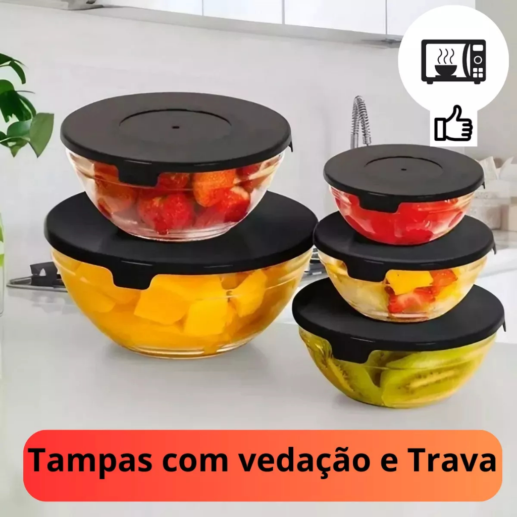 Conjunto Tigela De Vidro Bowl Marmita Com Tampa 5 Potes Com Tampa Conserva O Alimento