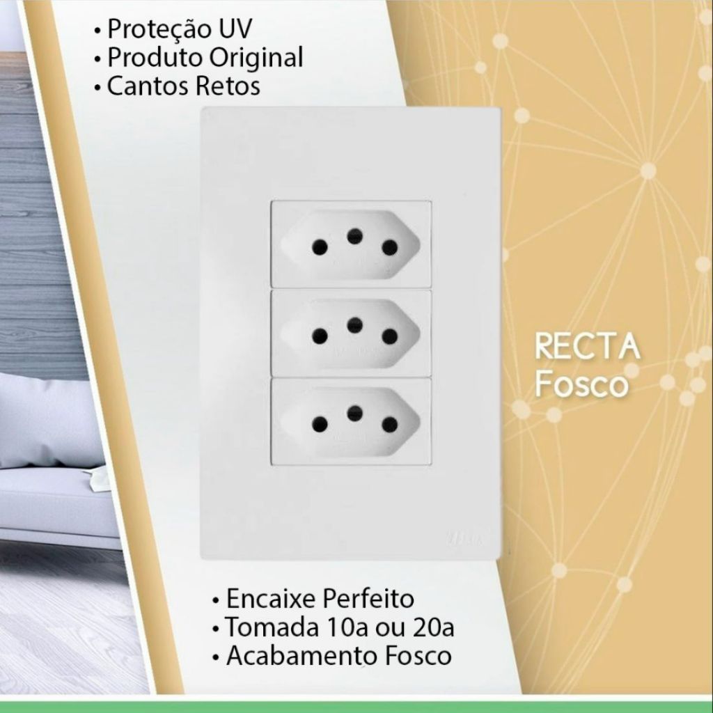 A beleza do seu ambiente Linha Recta Branco Satin Fosco Design exclusivo, com a proposta de unir tecnologia e uma aparência sofisticada em perfeita harmonia. - Placas e Módulos com Tratamento Anti - U.V.A. e U.V.B. - Acabamento monocromático: Mesma tonalidade no mecanismo e na placa. - Sistema de encaixe modular. - Fixação de condutores com exclusivo borne gaiola com parafusos imperdíveis. - Placas em ABS. - Marca de conformidade de produtos certificados. - Fabrica oferece 15 anos de garantia e possui o selo do inmetro.