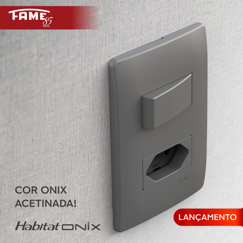 "Venda por unidade. As imagens são ilustrativas e mostram possíveis combinações. Selecione corretamente o modelo desejado e a quantidade antes de finalizar a compra." Descrição A beleza do seu ambiente em evidência. A Série Habitat Onix FAME é uma linha composta por Suportes, Placas e Módulos. Design exclusivo, com a proposta de unir tecnologia e uma aparência sofisticada em perfeita harmonia. Especificações: - Placas e Módulos com Tratamento Anti - U.V.A. e U.V.B. - Acabamento monocromático: Mesma tonalidade no mecanismo e na placa. - Sistema de encaixe modular. - Fixação de condutores com exclusivo borne gaiola com parafusos imperdíveis. - Placas em ABS. Garantia do fornecedor: A FAME LTDA. garante este produto contra eventuais defeitos de fabricação pelo prazo de 5 anos, contados e comprovados pela data de emissão do comprovante fiscal de venda ao consumidor, com atendimento no próprio local de aquisição. - Validade: Produto não perecível. - Importante: Antes de iniciar a instalação desligue o circuito elétrico. - Convém que seja instalado por pessoa qualificada.