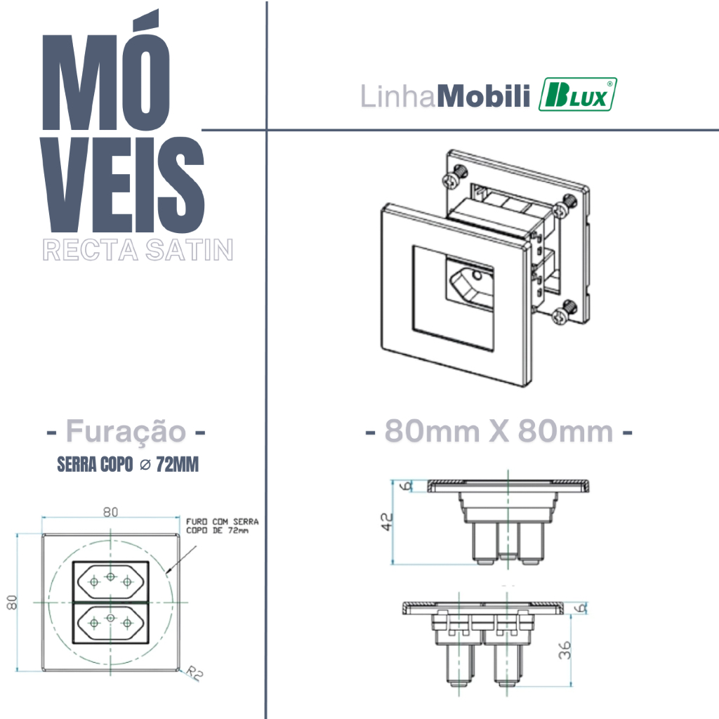 Conjunto Tomada Embutir Moveis Mobili Areia 10a 20a Bege Marrom Interruptor Recta Satin Fosco Blux