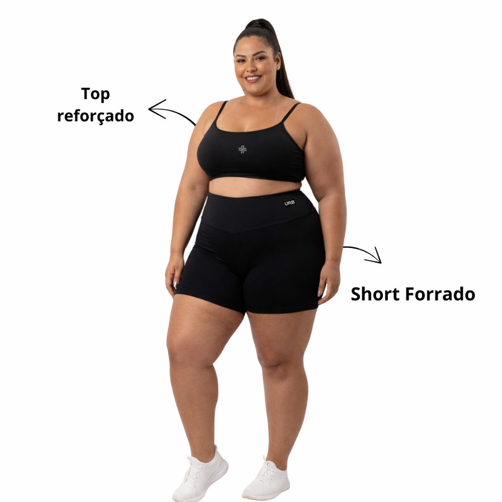 G1= VESTE 46-48 G2- VESTE 50-52 G3- VESTE 52-54 Conjunto top e Short Fitness Plus Size com Forro – Conforto, Segurança e Liberdade para Treinar sem Medo Se movimento é liberdade, este short foi criado para libertar você. Desenvolvido especialmente para corpos reais, curvos e lindos, o Short Fitness Plus Size com Forro da UrbAtiva garante treino com conforto absoluto, zero transparência e um caimento que abraça sem apertar. Por que você vai amar? 1-Forro interno que evita transparências em qualquer iluminação — academia, rua ou estúdio. 2-Tecido tecnológico que estica sem deformar e acompanha seus movimentos com suavidade. 3-Modelagem Plus Size pensada de verdade: cós firme, que não enrola, não aperta e valoriza a silhueta. 4-Secagem rápida e toque macio para treinos confortáveis do início ao fim. 5-Não marca e não sobe durante o exercício — estabilidade que faz toda diferença! Para todas as intensidades Perfeito para musculação, caminhada, funcional, dança ou aquele dia de autocuidado em casa. Ele oferece suporte e segurança sem abrir mão do estilo. Caimento que abraça Feito para te acompanhar sem limitar — ideal para quem quer se sentir segura, bonita e livre para mover o corpo com confiança. UrbAtiva é sobre sentir-se bem Cada peça nasce da escuta: entendemos o que incomoda, o que falta e principalmente o que faz você se sentir poderosa. Por isso colocamos o forro, ajustamos a modelagem e caprichamos no tecido. Tudo para você vestir e pensar: “era isso que eu procurava!” Sem garantia