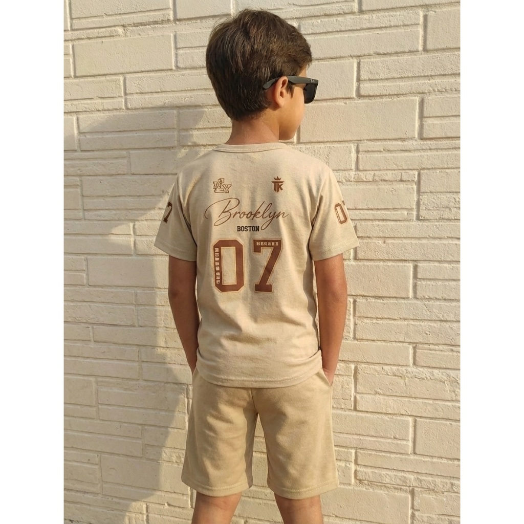 Conjunto Top Infantil Estiloso Infanto Juvenil Menino Verão 2026 Camisa e Bermuda 1 a 14 anos