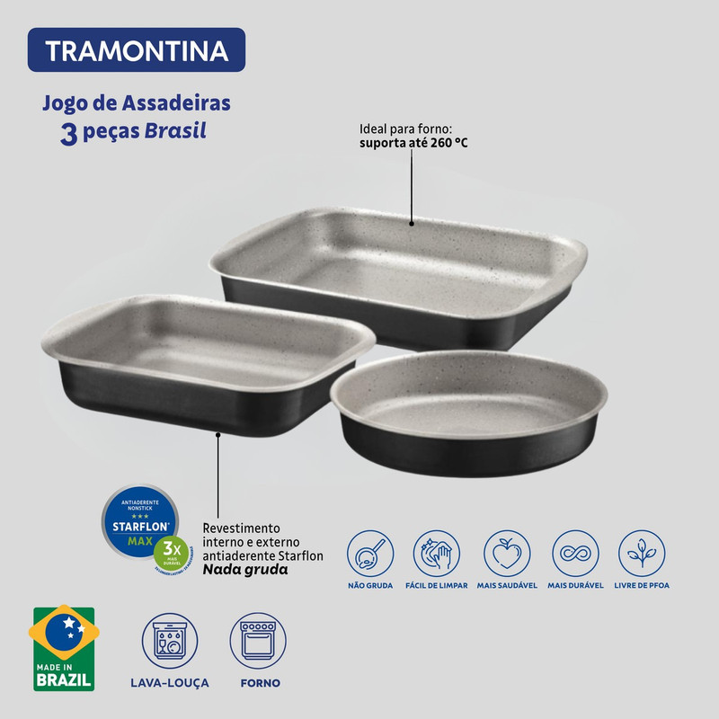Conjunto Tramontina de 3 Assadeiras Antiaderente Starflon