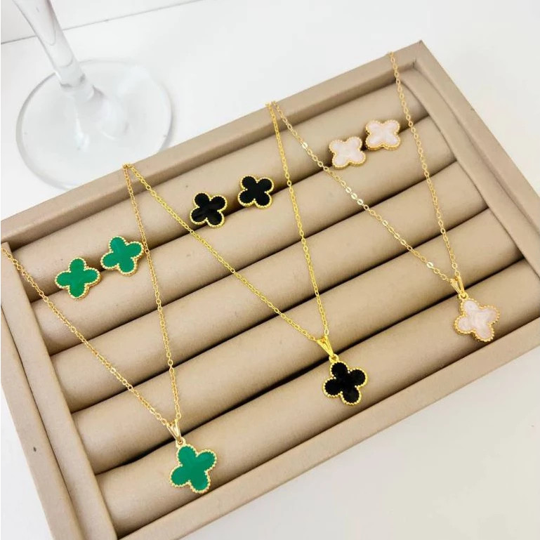 ✨ Conjunto Trevo - Todas as Cores! ✨ O acessório do momento chegou para deixar seu look ainda mais sofisticado e cheio de estilo! 🌟 ✅ Elegância e sofisticação: Uma peça fina que transforma qualquer visual! ✅ Alta qualidade: Folheado a prata 925 e ouro 18k, com uma camada de verniz para mais durabilidade. 📏 Medidas: Colar: 37cm + 5cm de extensor. Pingente: 14mm. 📦 O que vem no kit: 1 par de brincos 1 colar 💎 Dica especial: Combine com nossas pulseiras Trevo disponíveis na loja e crie o seu mix perfeito! 😍 🚚 Envio imediato: Compre agora e receba rapidinho! 🛒 Aproveite e peça já o seu na Shopee! ❤️