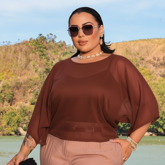 Conjunto Tule Plus Size GG(48-59) Blusa tule + Regata Morcego_ Chic e Confortável _ Estilosa _ Leve para o Dia a Dia💃🛍️