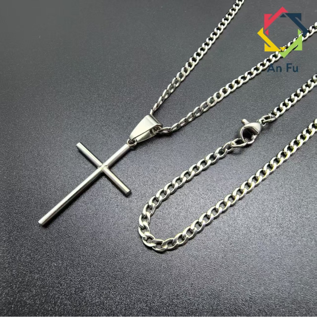 Conjunto Unissex de Aço Inox 316L - Corrente Prateada com Cruz Dourada, Estilo e Durabilidade